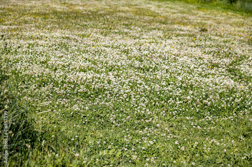 clover field full of flowers