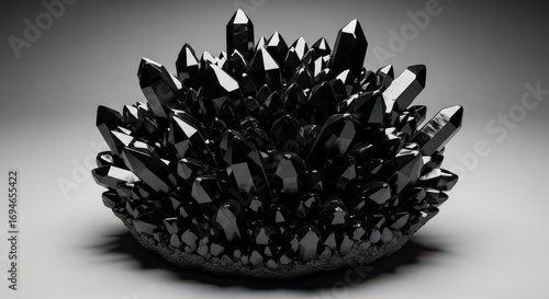 crystal, black, mineral, gem, flocked, shiny, object, geometric, shape, polished, dark, reflective, sparkling, abstract, design, isolated, closeup, graphic, pattern, texture, detail, modern, composition, isolated object, black background, grey background, digital illustration, photorealistic