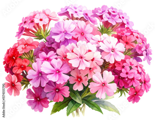 "Cluster of Purple Verbena Flowers in Top View, Realistic Style, Isolated PNG"And transparent the background.