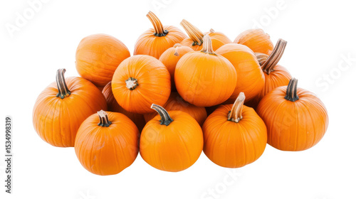 Cluster of Vibrant Orange Pumpkins Harvested from Farm Displayed on Transparent Background