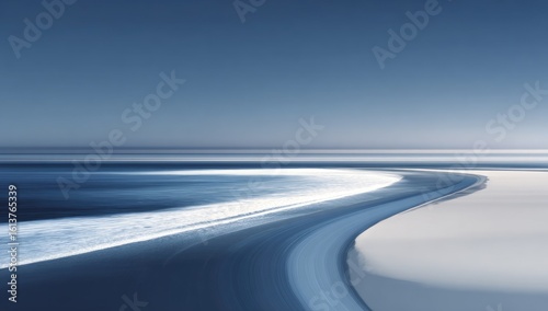 curve, beach, ocean, coast, water, sand, blue, white, calm, smooth, horizon, sky, light, motion, long, exposure, minimalism, tranquil, peaceful, serene, abstract, art, photo, landscape, nature, subtile, colours, gradient, still, wide, empty, huge, panoramic, soft, muted, minimalist, seacoast, wave, foam, flow, line, artistic, digital, impressionistic, blurred, dreamy