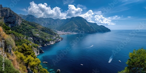 coastal, mountain, ocean, water, sunny, cliff, landscape, scenic, travel, italy, amalfi, coastline, green, vegetation, blue, cloud, vacation, tranquil, beautiful, dramatic, picturesque, viewpoint, high, elevated, serenity, panorama, summer, nature, mediterranean, rock, hill, cloudscape, sea, bay, shore, tour tourism, holiday, exploration, adventure