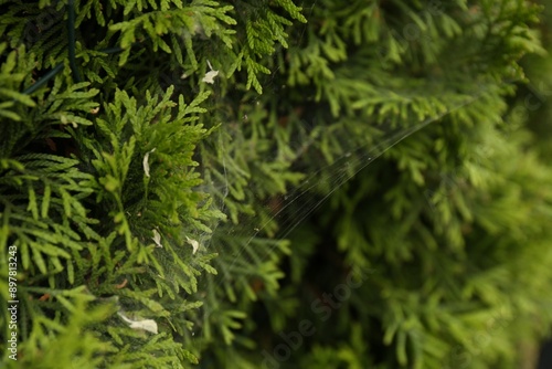 arachnophobia, background, beautiful, botany, bush, closeup, spider's web, creepy, danger, detail, environment, flora, floral, foliage, fresh, garden, green, hanging, insect, line, line, natural, nature, neglected, net, object, outdoors, park, pattern, plant, scarey, shrub, spider, spider's web, skittish, spring, summer, tangled, texture, thread, thread, thuja, trap, web
