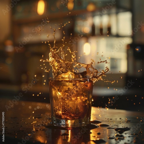 glasses, drink, alcohol, beer, whiskey, beverage, liquid, ice, cold, water, splash, bar, cocktail, isolated, white, whiskey, pouring, pour, yellow, bubble, bottle, liqueur, closeup, dripped, black