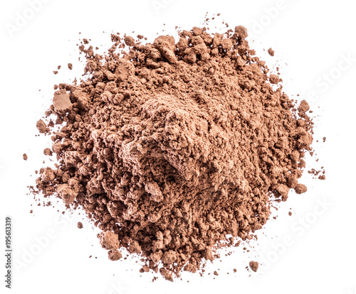Cocоa powder or carob powder on white background.