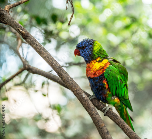 Coconut lorikeet or colorful parrot sitting on a branch.