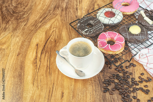 up high, background, baked, beverage, breakfast, brown, bun, cake, calorie, candy, chocolate, hot drink, colourful, cookie, cream, cup, delicious, dessert, donut, donut, drink, espresso, food, fresh, grille, mug, paper, pastry, snack, strawberry, sugar, sweet, table, tasty, tower, unhealthy, wood, wooden