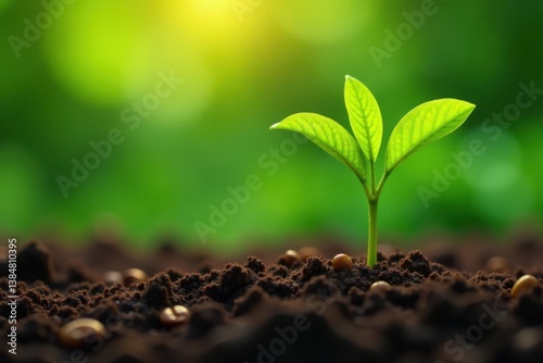 Coffee bean seedling grows amidst lush leaves and branches , agriculture, tree
