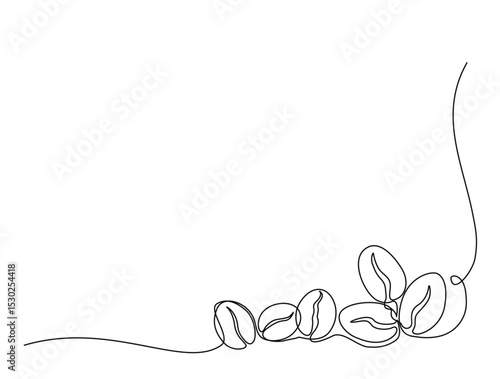 Coffee beans in single line draw illustration. Continuous one line drawing of coffee beans border. Editable stroke.