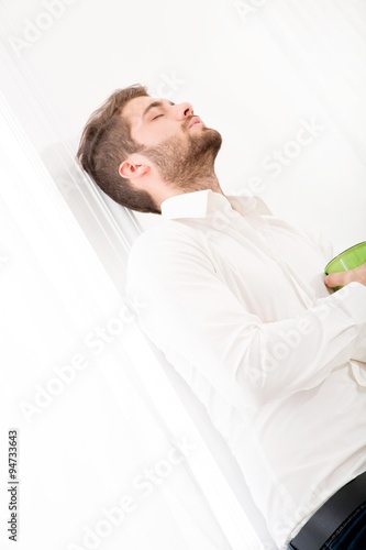 home, cup, hot drink, man, portrait, break, lifestyle, casual attire, photogenic, adult, young, caucasian, drink, happy, tea, person, interior, attractive, male, people, beverage, caffeine, mug, breakfast, kitchen, morning, 1, guy, looking, room, white, workplace, leisure, house, trendy, single, relax, face, businessman, beard, indoor, modern, stylish, office, expression, cool, posing, apartment, alone, pause