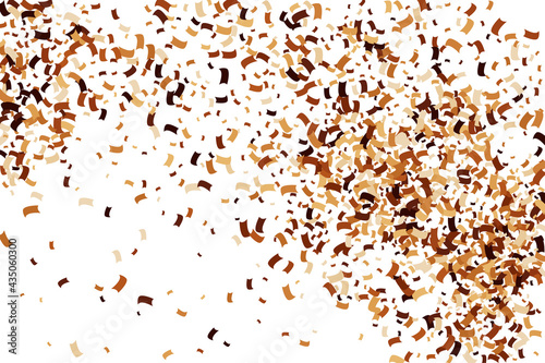 Coffee Color Confetti Isolated on White Background. Chocolate Shades Texture. Brown Particles. Digitally Generated Image. Vector Illustration, EPS 10.