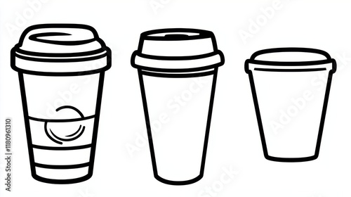 Coffee Cup Clip Art drawing icon set on a clean background, clip art style, vector illustration, coffee theme clip artwork for stickers, coffee shop graphics