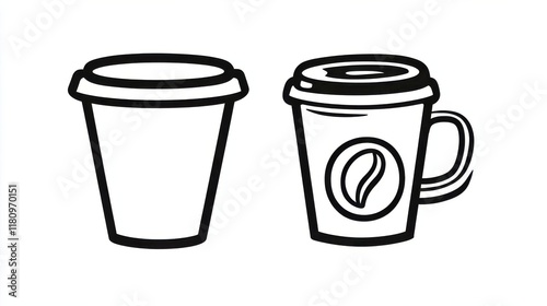 Coffee Cup Clip Art drawing icon set on a clean background, clip art style, vector illustration, coffee theme clip artwork for stickers, coffee shop graphics