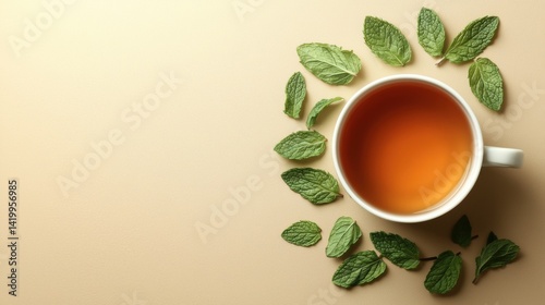 Coffee cup with fresh mint leaves on light background healthy beverage herbal tea refreshing drink wellness concept