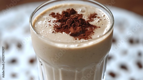 Coffee milkshake with a sprinkle of cocoa powder and a frothy top