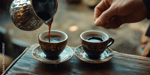 hot drink, pouring, cup, table, beverage, morning, daily, routine, office, life, cafes, atmosphere, breakfast, brunch, mealtime, people, human, hand, liquid, serving