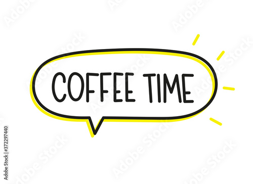 Coffee time inscription. Handwritten lettering illustration. Black vector text in speech bubble. Simple outline marker style. Imitation of conversation.