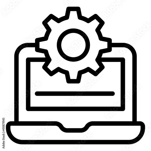 system, setting, configuration, management, laptop, icon, vector, linear, outline, gear, cogwheel