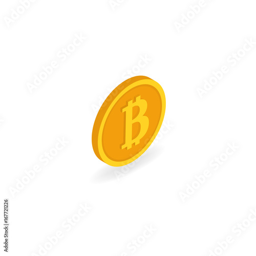 Coin bitcoin on a white background. Isometric vector illustration.