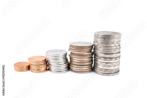 Coin stacks on a white background