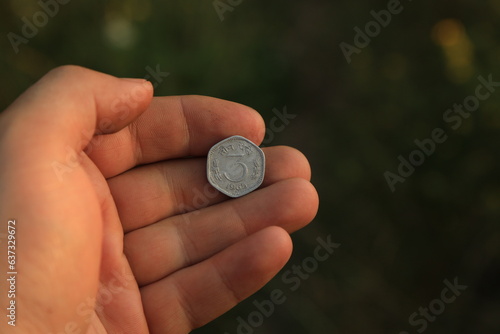 Coin three rupees in hand