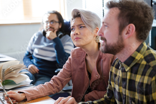 team, group, people, man, woman, mixed race, togetherness, explain, negotiate, work, teamwork, colleague, cooperation, co-worker, indoor, day, computer, technology, wireless, business, office, brainstorm, talking, desk, interior, smile, casual attire