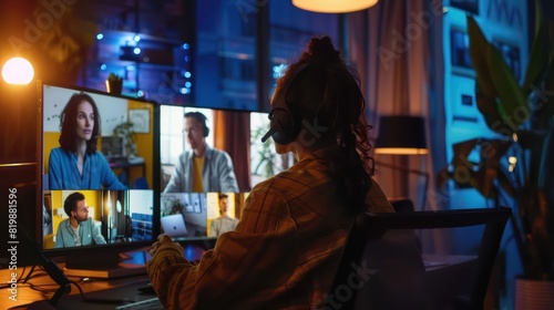 Colleagues working together remotely, sharing screens and discussing project details during a video call.