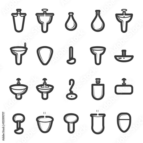 Collection Of 20 Black And White Urinal And Sink Icons