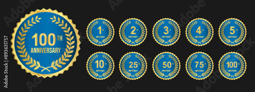 Collection of anniversary symbols. Gold blue premium badge Anniversary celebration design for company profile, booklet, flyer, magazine, brochure, web, invitation or greeting card.