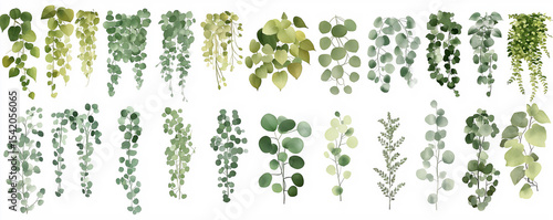 eucalyptus, leaf, greenery, foliage, botanical, hanging, trailing, plant, nature, green, fresh, round, nubes, leaf, collection, set, white, background, organic, vine, texture, soft, pastel, watercolor, arrangement, indoor, garden, potted, lush, floral, natural, stem, tropical, spring, summer, pattern, decor, minimal, botany, elegant, smooth, vibrant, aesthetic, design, leaflet, cluster, realistic