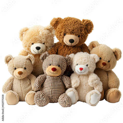 Collection of assorted teddy bears in various colors and sizes on a white background