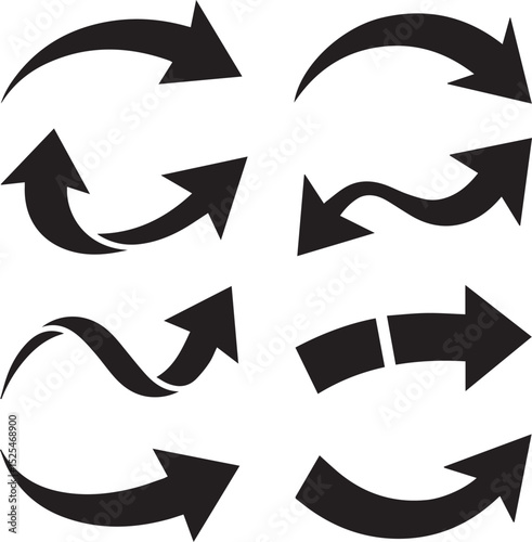 arrow, arrow, direction, signs, symbol, icon, vector, design, graphic, illustration, set, collection, shape, curve, point, pointer, forward, next, right, black, white, isolated, element, interface, navigation, path, way, route, guide, choice, select, flow, movement, motion, bend, twirling, abstract, simple, flat, arrowhead, indicator