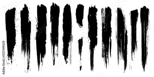 Collection of black brush strokes drawn by hand. Vector illustration isolated on white background.