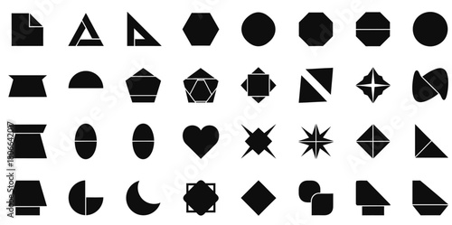 geometric, black, white, background, circle, triangle, hexagon, octagon, crescent, oval, abstract, graphic, element, collection, simple, clean, modern, pattern, art, basic, form, polygon, object, silhouette, isolated