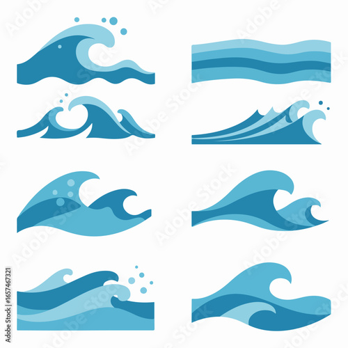 wave, water, ocean, sea, blue, illustration, vector, graphic, icon, set, collection, design, element, symbol, stylised, flat, cartoon, simple, clean, modern, minimal, water, marin, liquid, fluid, ripple, splash, surf, curve, motion, dynamic, flow, nature, environment, weather, beach, summer, holiday, travel, surfing, nautical, spa, freshness, purity, cool, calm, serene, background, pattern