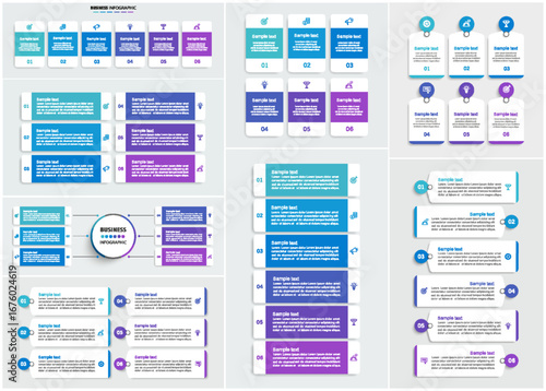 Collection of business infographic design template with options, steps or processes. Can be used for workflow layout, diagram, number options, web design