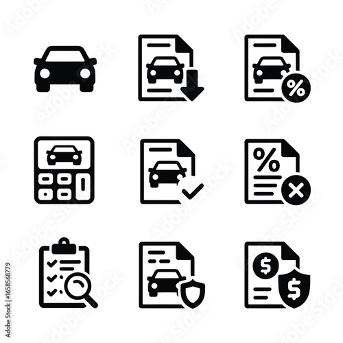car, insurance, icon, vector, automobile, vehicle, document, paper, contract, policy, protection, security, financial, finance, money, cost, price, deal, loan, payment, calculating machine, inspecting, inspection, check, approved, rejected, discount, percentage, shield