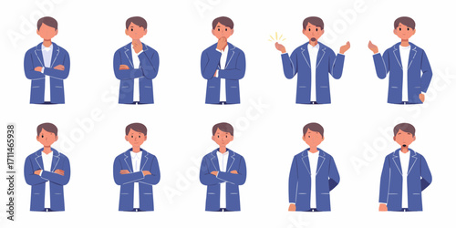 businessman, cartoon, illustration, character, man, male, person, people, white background, isolated, set, collection, pose, gesture, emotion, expression, thinking, idea, surprised, confused, doubt, questioning, confident, standing, arms crossed, pointing, talking, professional, business attire, suit, jacket, shirt, vector, graphic, design, element, icon, concept, communication, work, office, animation, storytelling, presentation, project