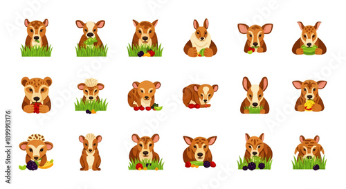 cervid, cartoon, animal, face, grass, rabbit, illustration, doodle, wildlife, cute, fawn, drawing, character, funny, children, children, forest, timberland, nature, green, leaf, spring, summer, season, emotion, expression, head, portrait, closeup, whimsical, fantasy, art, design, graphic, symbol, icon, set, collection, group, multiple, variety, different, unique, individual, personality, style, theme, mood, atmosphere
