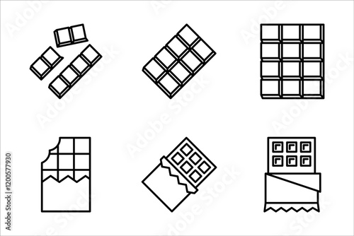 collection of chocolate bar icons, signs and symbols, on white background.