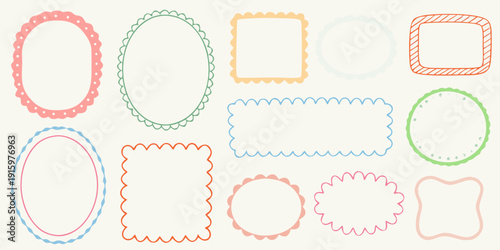 frame, border, shape, decorative, colourful, pastel, pink, orange, green, blue, teal, geometric, oval, circle, rectangle, wavy, dotted, lined, zigzag, design, element, illustration, graphic, vector, pattern, artwork, isolated, background, template, clip art, ornament, embellishment, layout, craft, scrapbooking, stationery, paper, texture, hand-drawn, vignetting, style, creative, modern, simple, flat, abstract, arrangement