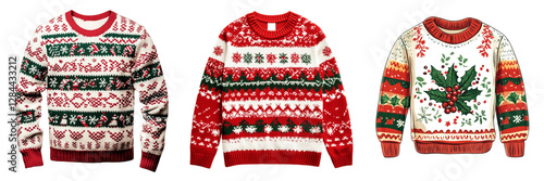 Collection of cozy Christmas decorated holiday sweaters isolated on a transparent background