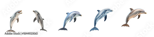Collection of Dolphin communicating A dolphin opens its mouth or raises its body to signal. full length isolate on transparent background