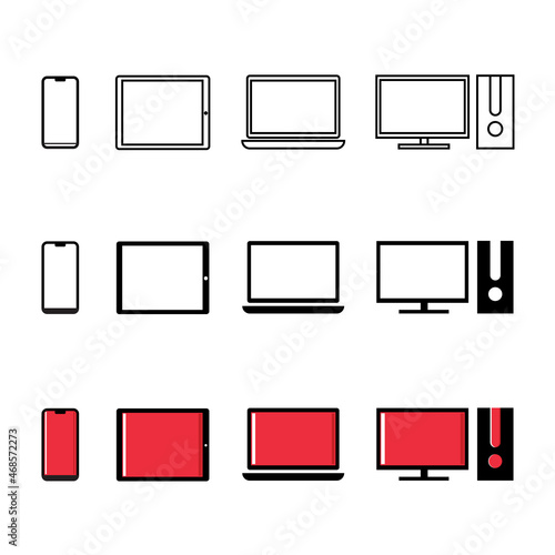 collection of electronic goods icons in the form of gadgets, tablets, laptops and computers. concepts for web, app, business and ui.