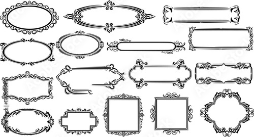 Collection of elegant vintage border frames in diverse shapes for decorative design elements