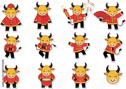 Collection of Festive Ox Icons for Chinese New Year Celebrations