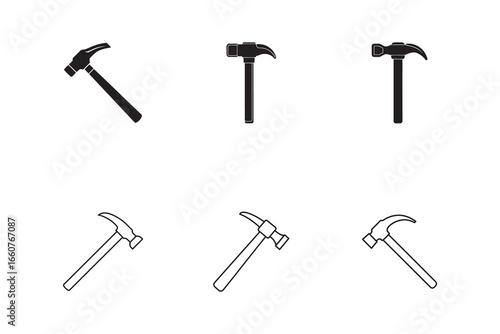 Collection of Hammers in Black and White Featuring Various Styles and Designs for Construction and DIY Projects