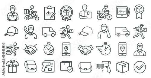 Collection of icons for delivery services, including a man on a bike, a man on a motorcycle, and a man on a bicycle