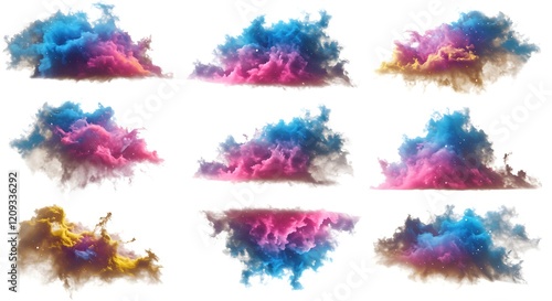 Collection of Isolated Nebula Cloud Patterns in Vibrant Colors