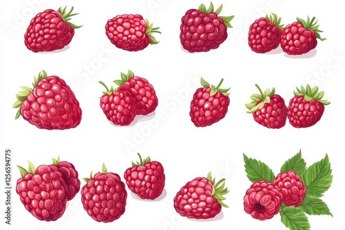 raspberry, isolated, berry, fruit, white, ripe, set, leaf, juicy, food, health, white background, red, plant, healthy, diet, natural, organic, epicure, vitamin, sweet, macro, collection, raw, closeup, closeup, delicious, 4, fresh, freshness, group, tasty, vegetarian